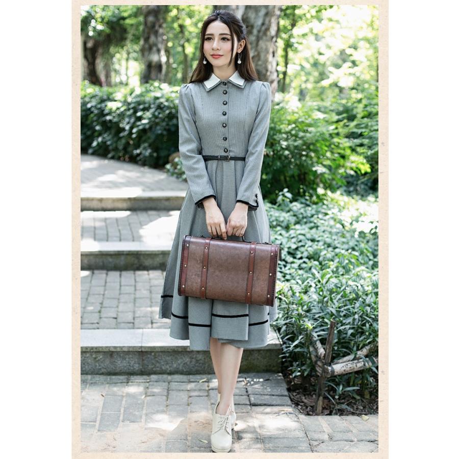 マキシ丈ワンピース ロングワンピース レトロ クラシック 秋冬 ベルト付き 千鳥格子 ミモレ丈 Aライン フレア Wata リラークショップ 通販 Yahoo ショッピング